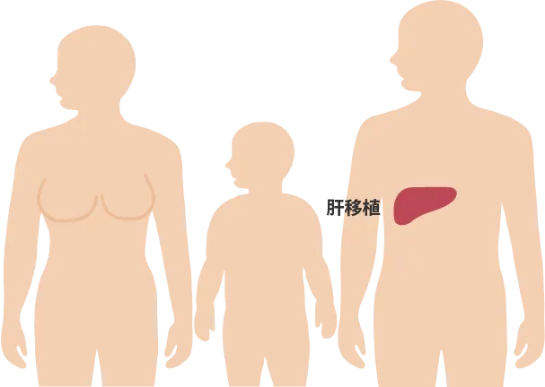 胆道閉鎖症、肝硬変、肝芽腫、アラジール症候群、代謝性肝疾患、急性肝不全など