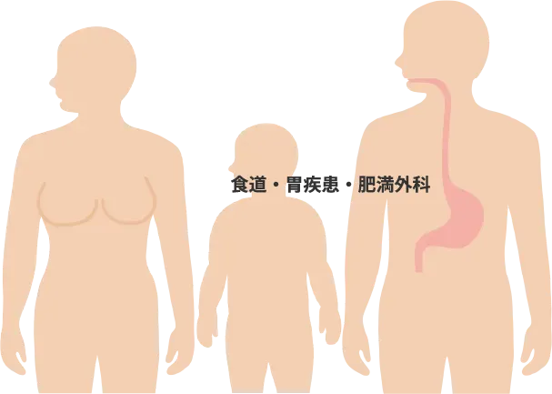 胃悪性腫瘍(癌、肉腫、悪性リンパ腫、GIST)、胃良性腫瘍、食道悪性腫瘍(癌、GIST)、食道アカラシア、食道裂孔ヘルニア 、十二指腸疾患、肥満症
