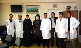 2012年10月には、シズガノフ外科センター長であるArzykulov教授他、外科、麻酔科チームが長崎大学病院の見学に訪れました。10日ほどの滞在でしたが、期間中に当科以外との面談や見学も行い、長崎大学とシズガノフ外科センターの結びつきは今後一層強くなることが期待されます。