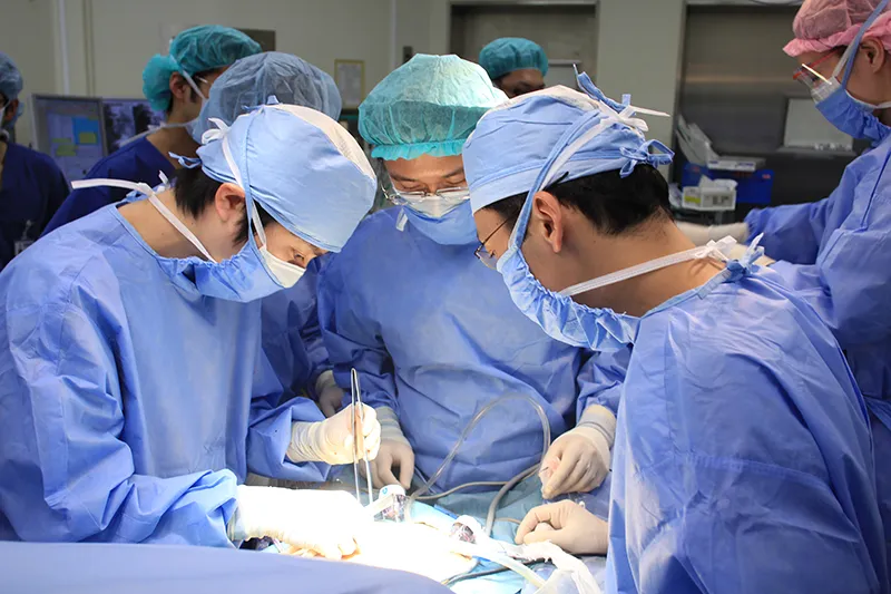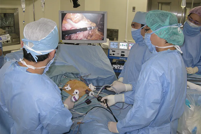 われわれは、特に、患者さんに優しい鏡視下外科手術(胸腔鏡や腹腔鏡を用いた傷の小さい手術)と先進的な移植外科手術(脳死あるいは生体肝移植、膵島細胞移植など)を深く、手掛けております。一方、いわゆる一般外科(腹膜炎、腸閉塞、虫垂炎、ヘルニア、脱腸、痔などなど)も日頃から丁寧に診療しています。