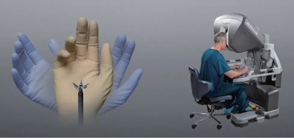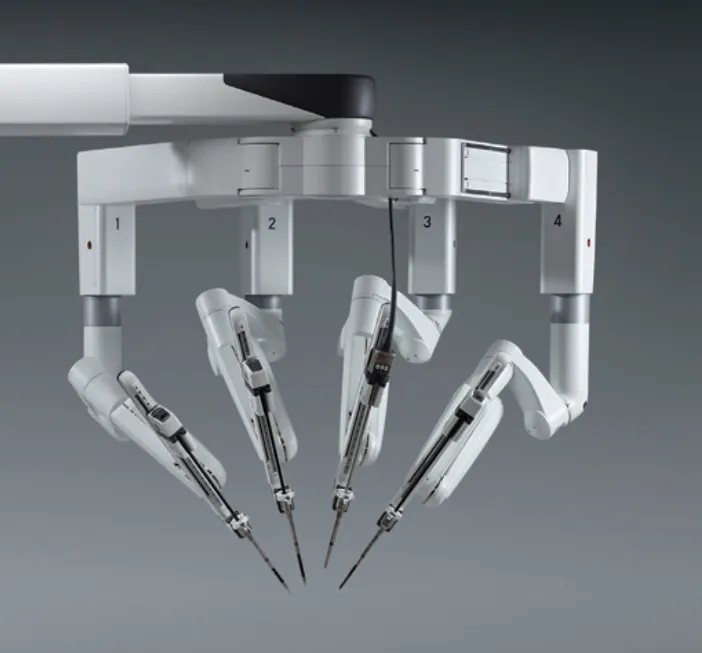 ロボット支援下手術は、daVinciサージカルシステムという最新技術を搭載した手術支援ロボットを用いて行います。自由度の高い操作性と3D画像による高い視認性は、従来の腹腔鏡手術を上回るとされており、より精緻な手術を確実に行うことが可能となります。当院ではdaVinichi Xi というintutive社の最新機を使用しております。